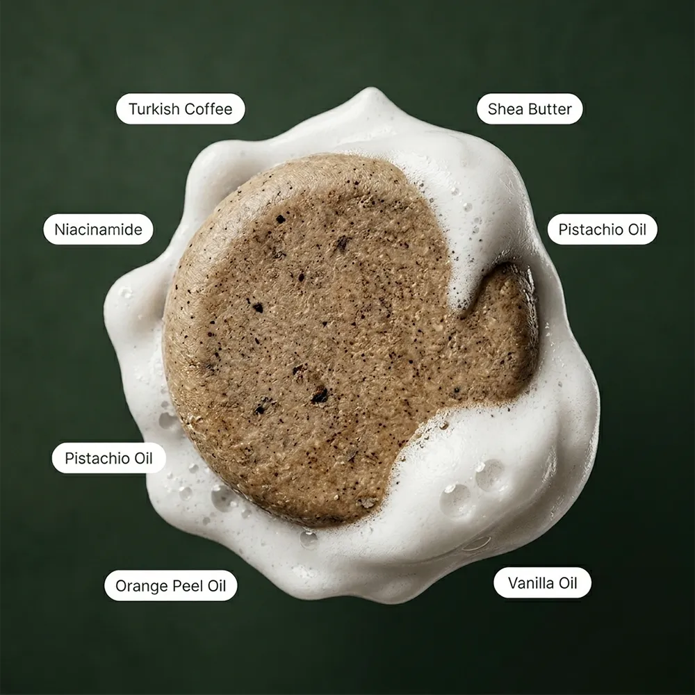 Turkish coffee, one of Anatolia’s ancient beauty rituals, is combined with naturally derived, skin-renewing ingredients to create a high-performance cleansing bar. From the very first use, it purifies the skin, reduces the appearance of dark spots, enhances radiance, and restores balance.